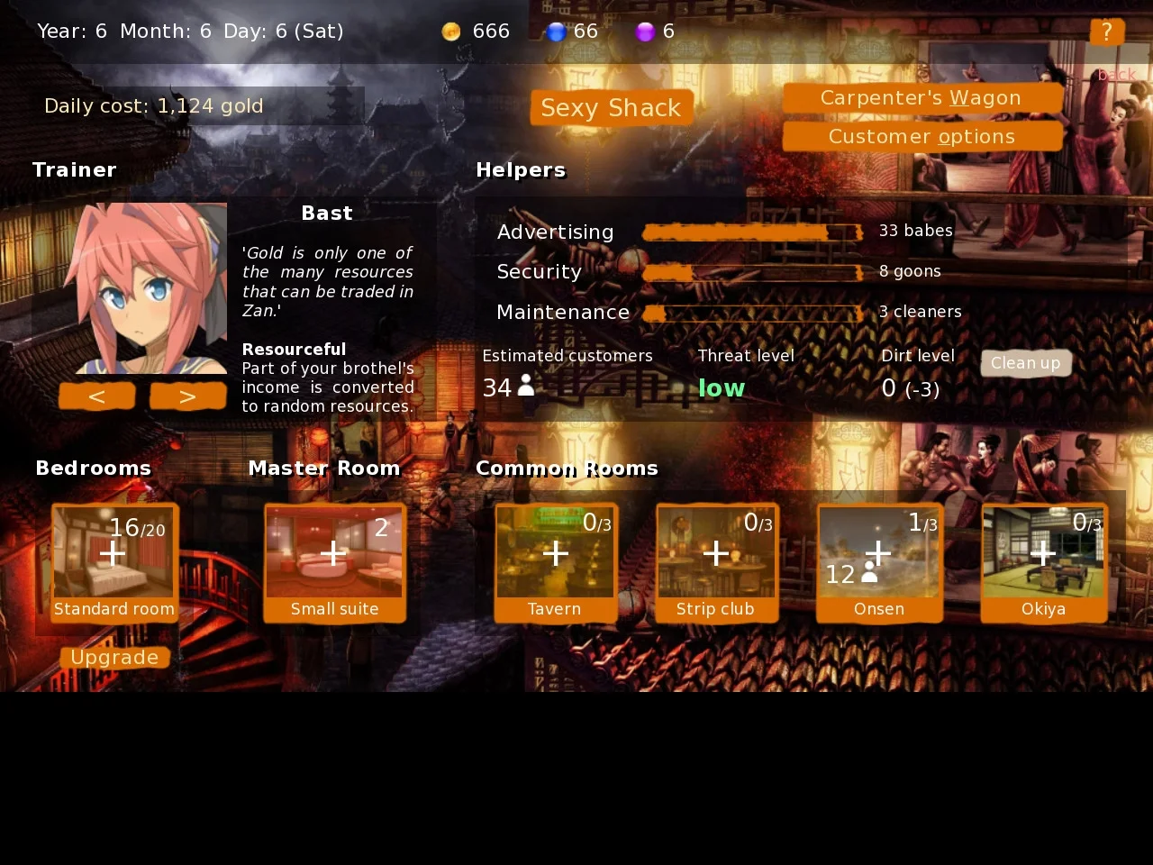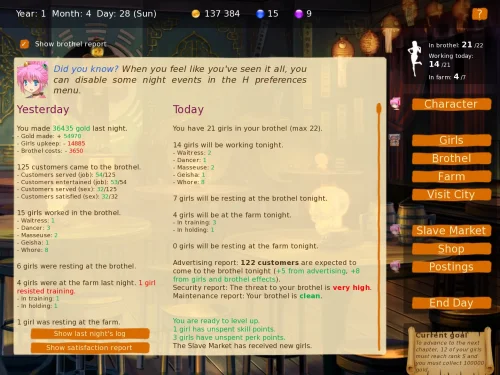 - Full fledged brothel management game, set in the fantasy oriental city of Zan
