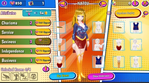 The gameplay of Kinky Cosplay Heroes revolves around upgrading different aspects and improving the heroes' abilities. Users earn income by interacting with peers, improving their spaces, and automating the process for profit. This setup allows gamers to continue to grow the business without requiring constant attention by mimicking the mechanics of other titels. A notable feature is the chance to customize characters and studio spaces, tailoring them to personal preferences.