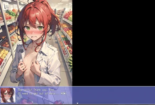 Redhead school girl get's blackmailed into doing various missions around the city, involving nudity,