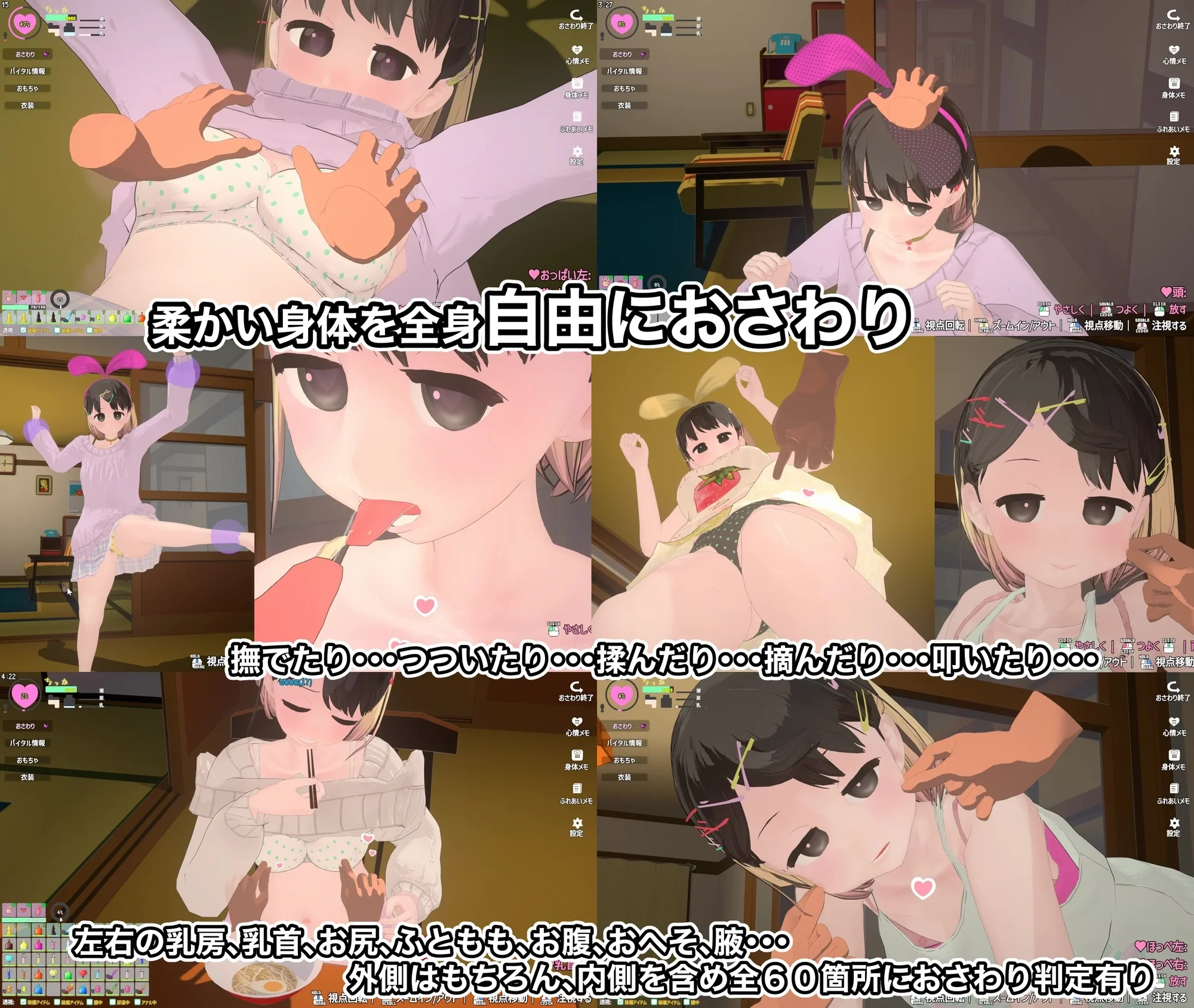 The girl’s actions change based on her mood, and you can move around freely and interact with her.