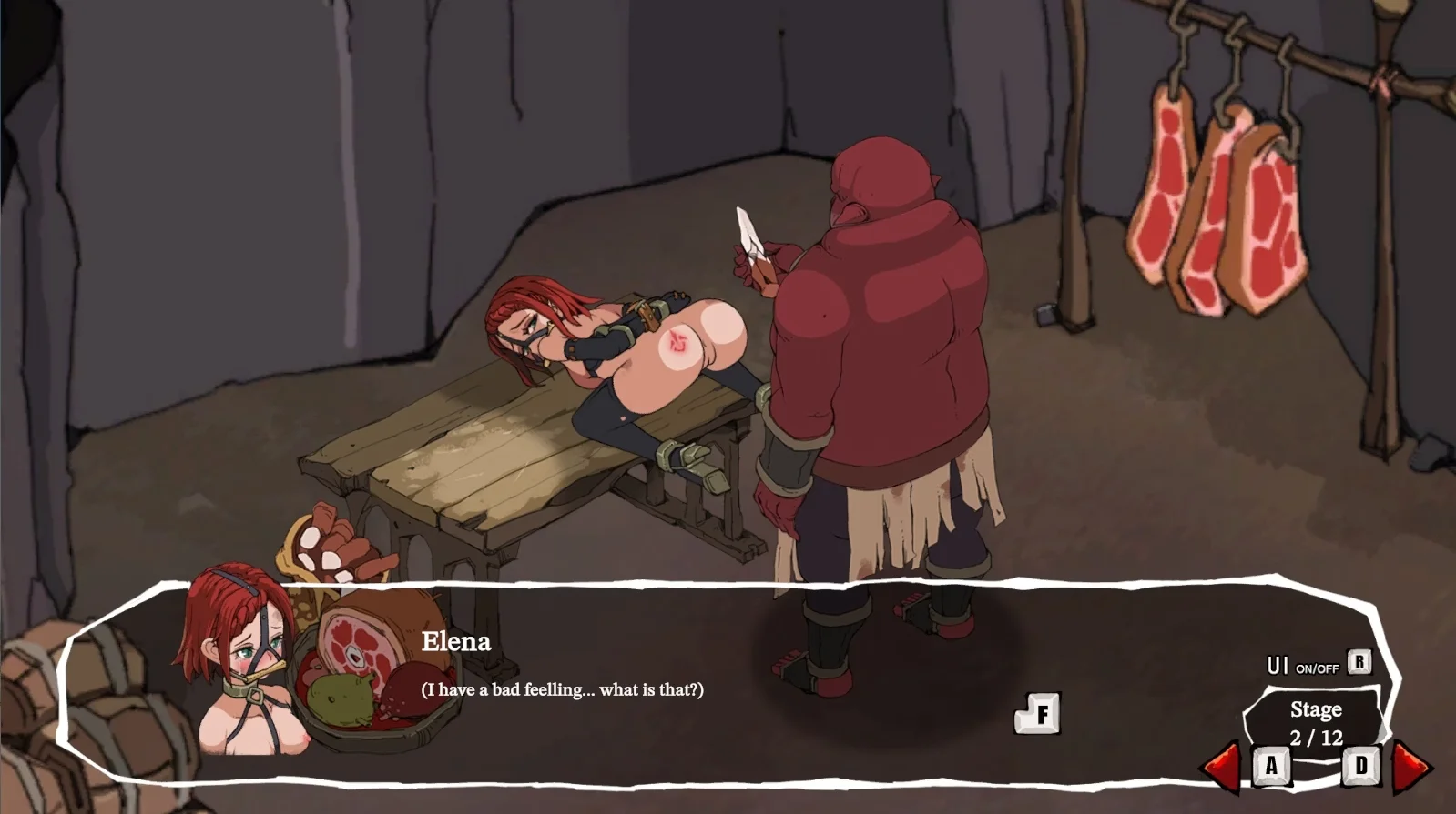 Elena, an adventurer, is captured by a cruel and sadistic race of half-humans who hunt and enslave humans. The game recounts Elena's days spent in their camp before she was sold at a slave auction. The perverted sexual training conducted by the half-humans, known as the Unians, will test her will and sanity.