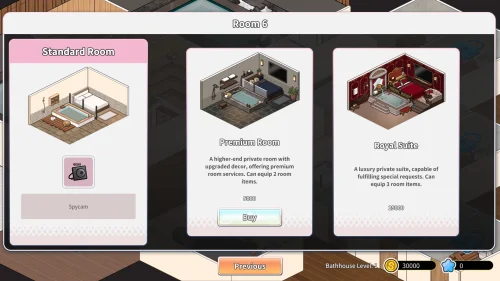By earning income through the bathhouse, he upgrades its interior, expands services, and raises its reputation to attract a wider range of customers.