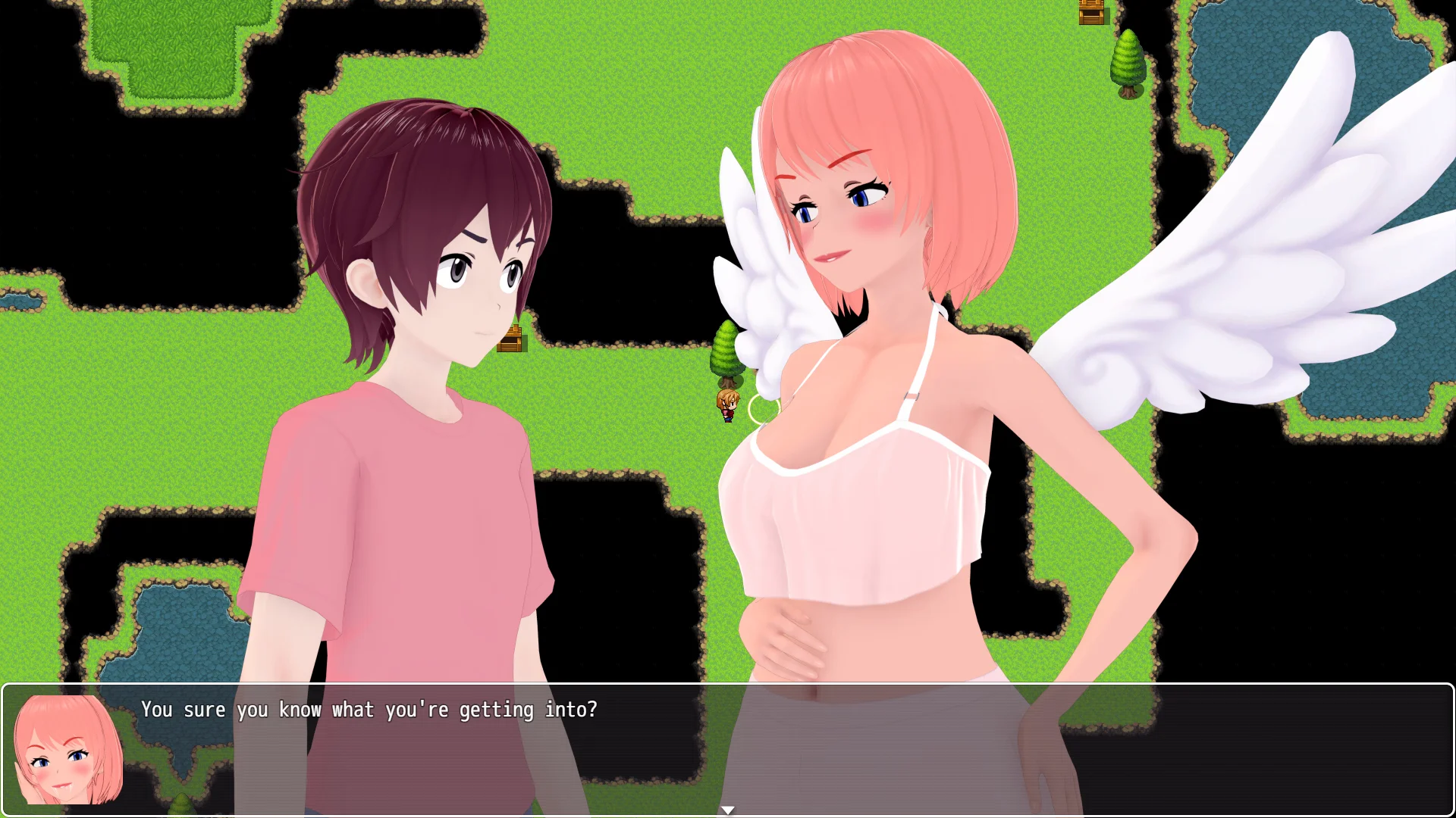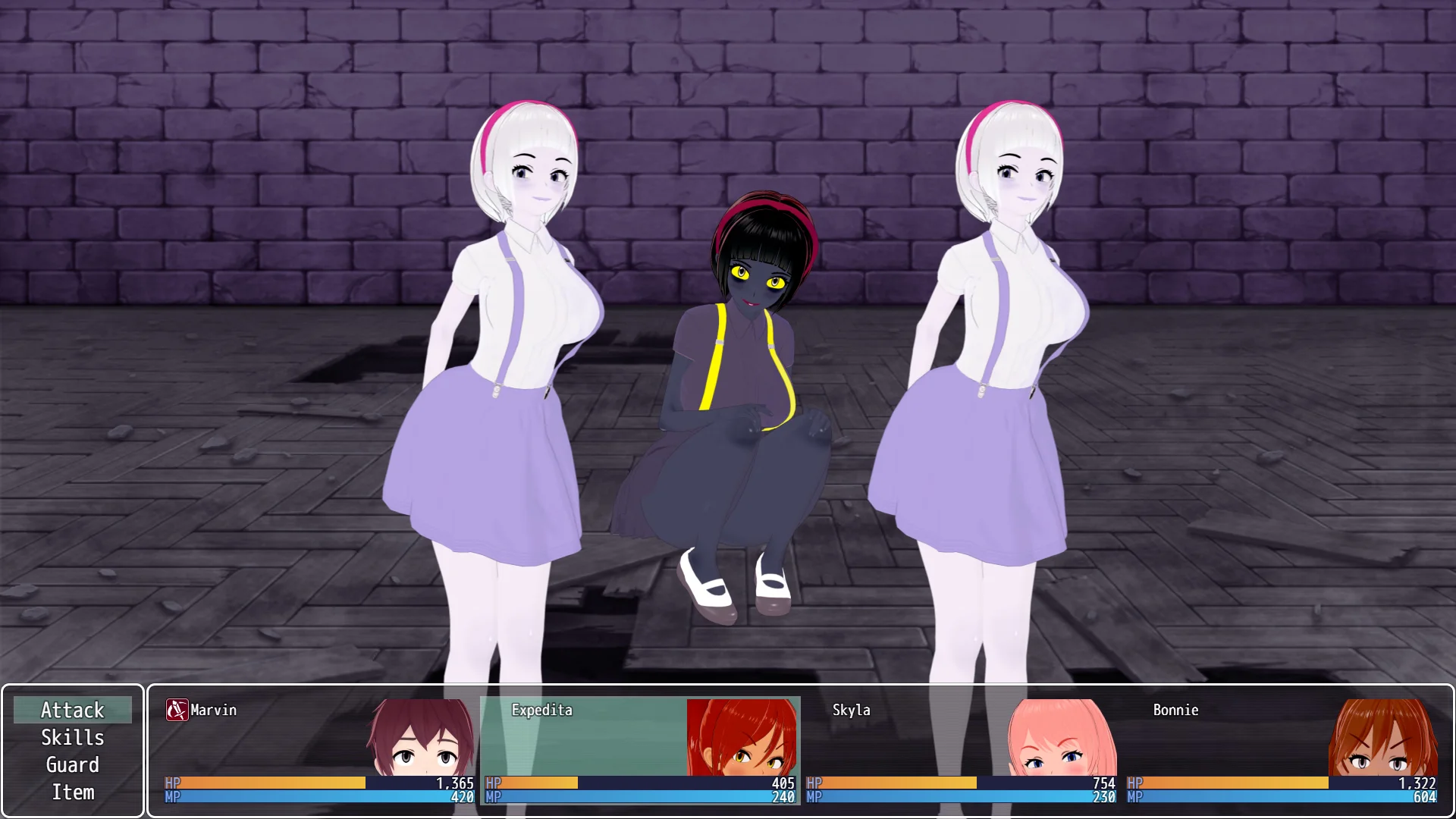Right now it plays like a dungeon crawler - take your party (or solo) into randomly generated dungeons with enemies, bosses, traps (to come), etc that presents interesting challenges and scenes for our heroines (and heroes in the future). Dress up...